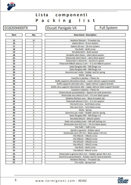 Sistema de escape completo Termignoni de titanio 4USCITE para Ducati Panigale V4 R (19-24) D18209401TTX